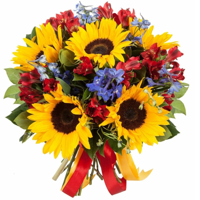 Альстромерия, Дельфиниум, Подсолнух |